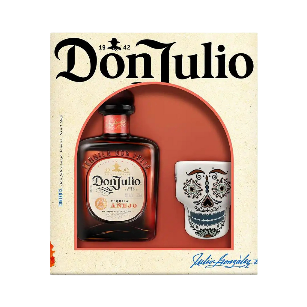 Don Julio Añejo VAP Gift Set is a premium barrel-aged tequila gift pack featuring Don Julio Añejo paired with a decorative skull cup, presented in a bold collector-style box (as shown in the image: the Don Julio Añejo bottle set in a warm terracotta display beside the skull cup). Designed for gifting and elevated sipping, this set is ideal for celebrations, corporate hampers, and tequila enthusiasts who appreciate richer oak-aged character.