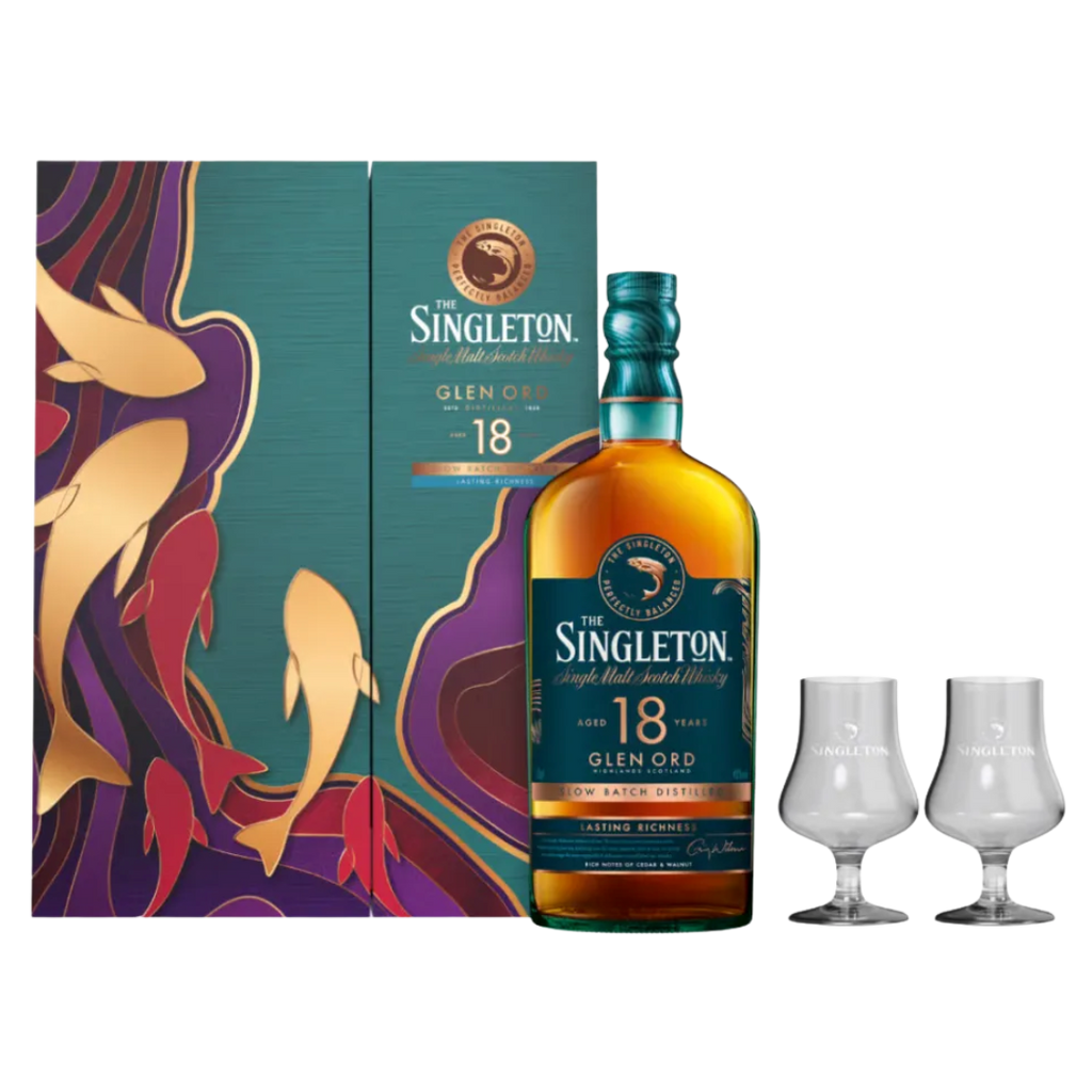 Indulge in refined luxury with The Singleton Glen Ord 18 Year Old Single Malt Scotch Whisky, beautifully presented in a limited-edition Festive VAPcomplete with a nosing glass—crafted for the true whisky connoisseur.